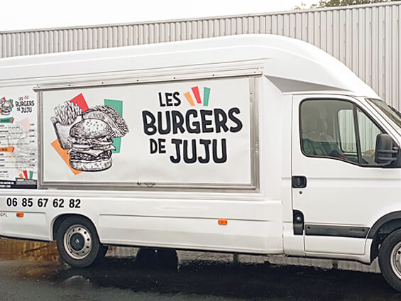 Réalisation et pose d'un marquage véhicule pour Les Burgers de Juju