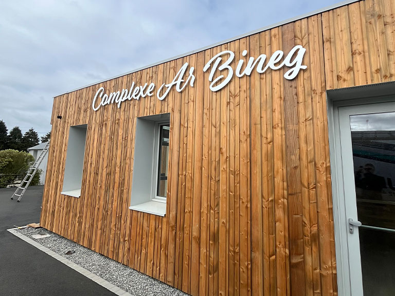 Suite au renouvellement de la façade avec un bardage bois, la commune nous a fait confiance pour réaliser l’enseigne du bâtiment !