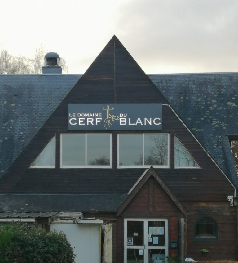 La famille LOUAISIL à Carentoir, reprend le magnifique domaine près de l’étang du Boschet, nouvellement baptisé « domaine du cerf blanc », pour mettre en valeur leur savoir faire ils ont choisi une enseigne lumineuse avec lettres en relief en PMMA. L’accent est mis sur leur logo de couleur dorée.