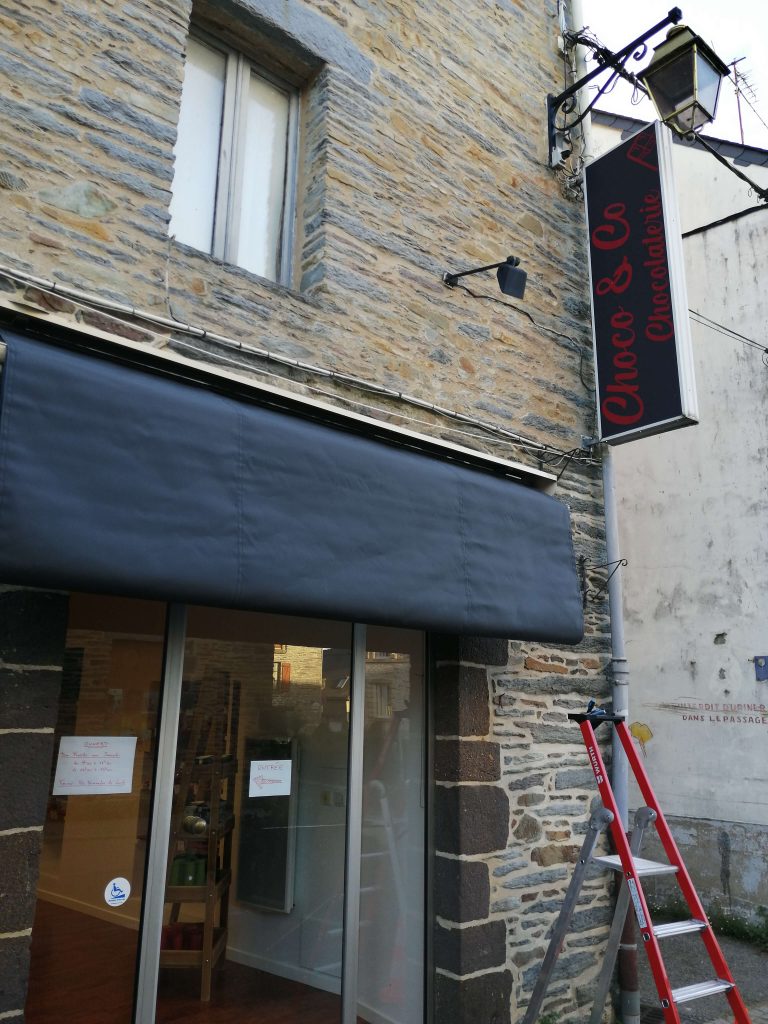 Espace Publicréation s’est occupé de la création à la pose pour la chocolaterie CHOCO & CO à La Gacilly (56) (Morbihan) enseignes lumineuses par spots LED et des remplacements des toiles de stores . Identité visuelle à l’équipe d’Espace Publi création pour le Logo, charte graphique, carte de visite, tabliers personnalisées.