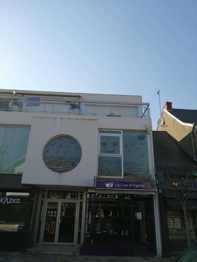 Espace Publicréation a réalisé un covering (habillage) de vitres décorées avec adhésif dépoli découpée. Pose sur La Baule (44)