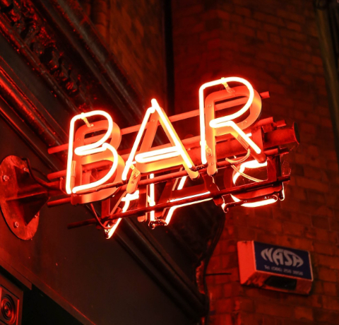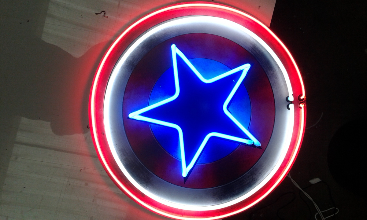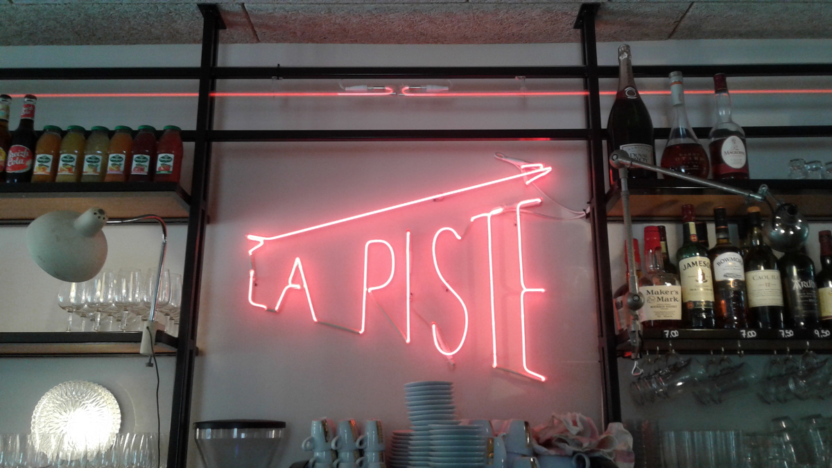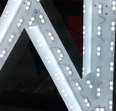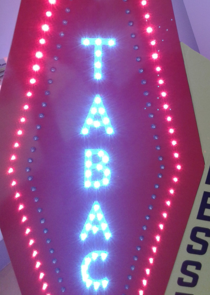 Un spot a trouvé sa place sous le logo pour éclairer l’enseigne par le dessous.