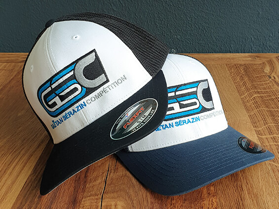 Broderies réalisées sur des casquettes pour Gaëtan Sérazin Compétition !
